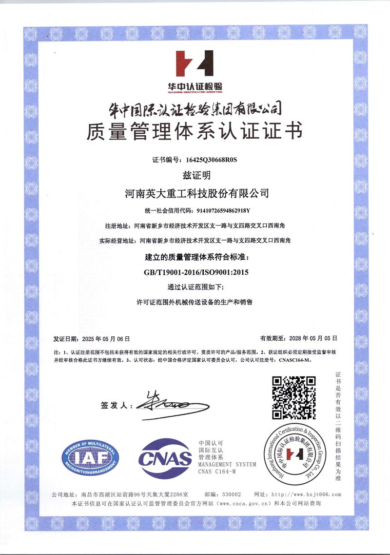 河南英大重工科技股份有限公司是一家集提升输送设备,振动设备,锅炉辅机的研究、制造和销售为一体的综合机械制造企业。产品在国内外矿山、水泥、冶金、食品、化工及煤炭等行业得到一致好评!
